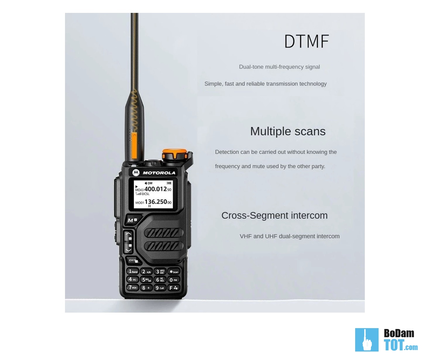 • Dải tần số: 136-174 MHz/350-390 MHz/400-520 MHz